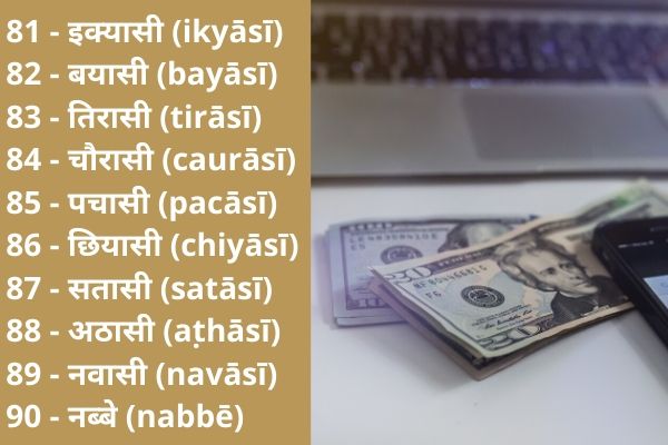 Hindi numbers 81 to 90